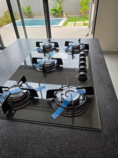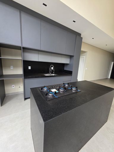 Cozinha com Ilha planejada e cooktop 05 bocas