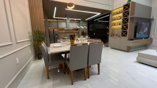 Casa Neoclássica à venda totalmente funcional, com 168 m² de construção, distribuídos em 3 quartos suítes, living com pé direito alto, área gourmet integrada com área da piscina.