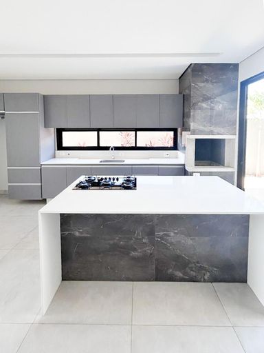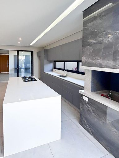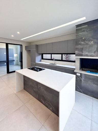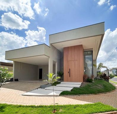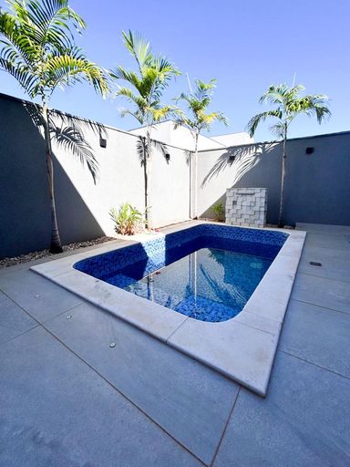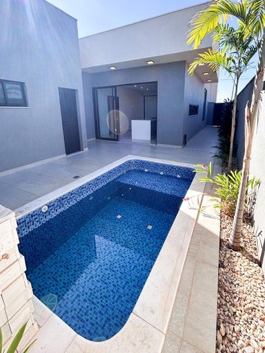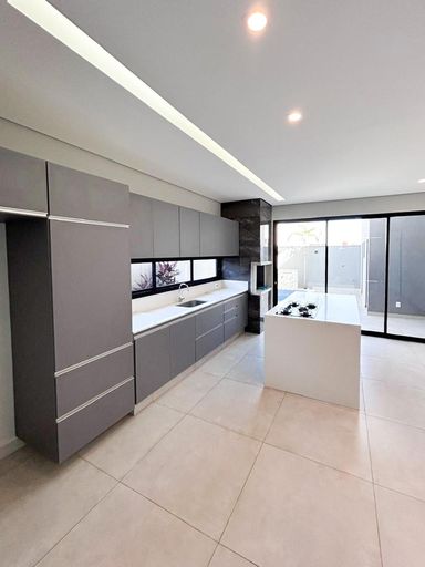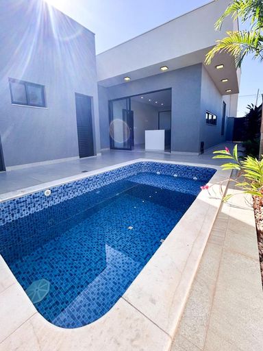 Casa térrea à venda totalmente funcional, com 180 m² de construção, distribuídos em 3 quartos, sendo 1 suíte, escritório, living com pé direito alto, cozinha interna com cooktop e área gourmet integrada com área da piscina.