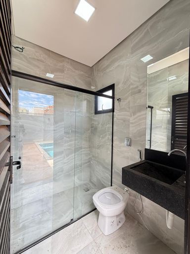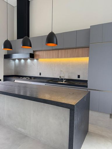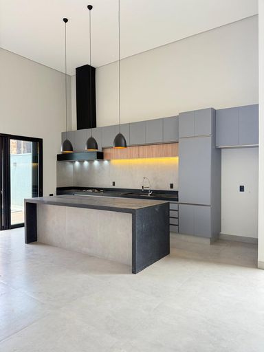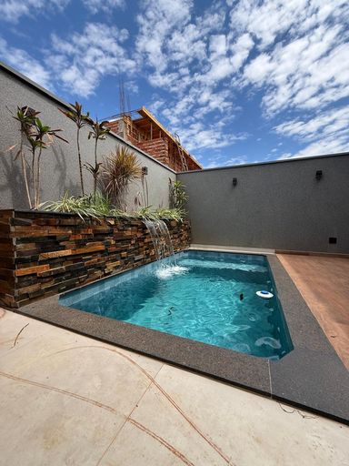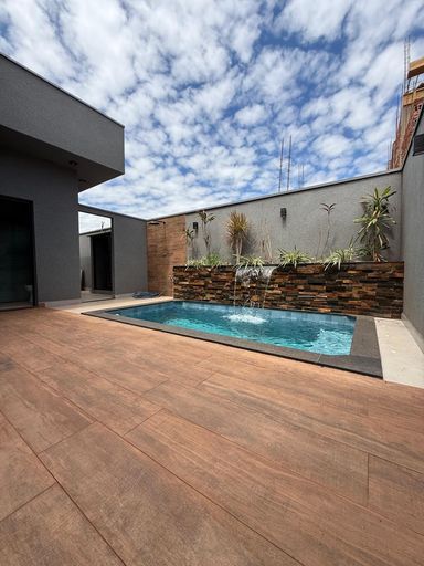 Casa térrea à venda, com excelente acabamento, rica em marcenaria, são 170 m² de construção, distribuídos em 3 quarto suítes, todos com armários planejados, sala com pé direito duplo, integrada com área gourmet bem equipada, lavabo área da piscina, lavanderia, marcenaria completa e uma linda piscina com cascata.