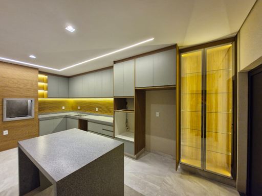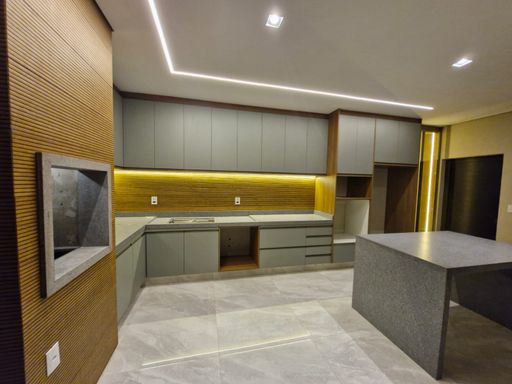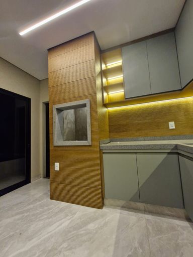 Casa térrea à venda, com excelente acabamento, rica em marcenaria, Iluminação em Led, aquecimento de água nas duchas e torneiras via coletores solares e boiler, infra para sistema fotovoltaico de energia. São 180 m² de construção, distribuídos em 3 quartos, sendo a suíte do casal com closet, bancada dupla e duas duchas e 2 tipo apto, todos com armários planejados, sala com pé direito alto, iluminação toda em led com possibilidade de integração a área gourmet através de uma grande porta embutida na marcenaria, bancada com pia dupla e torneiras aquecidas, churrasqueira integrada a bancada, coifa embutida na marcenaria, infra e espaço reservado na marcenaria para lava louças de até 14 serviços.