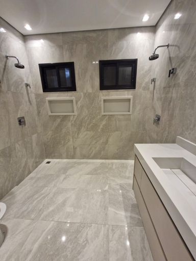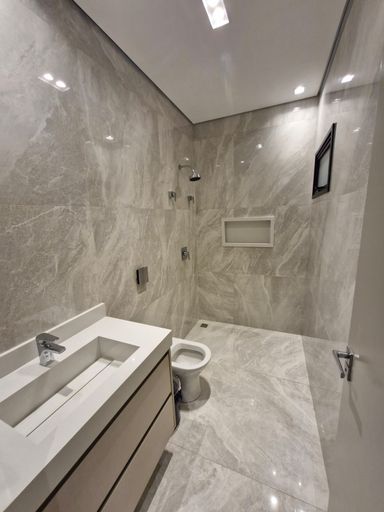 São 3 quartos, sendo a suíte do casal com closet, bancada dupla e duas duchas e 2 tipo apto., todos com armários planejados.