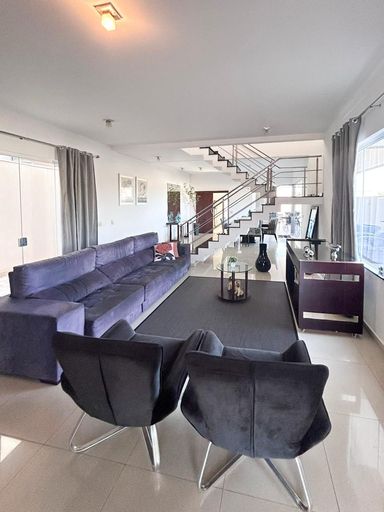 Sobrado à venda, com 300 m² de construção, distribuídos em 4 quartos suítes, escritório, home, sala ampla com pé direito duplo e uma área gourmet aconchegante, bem equipada e integrada com espaçoso quintal.
