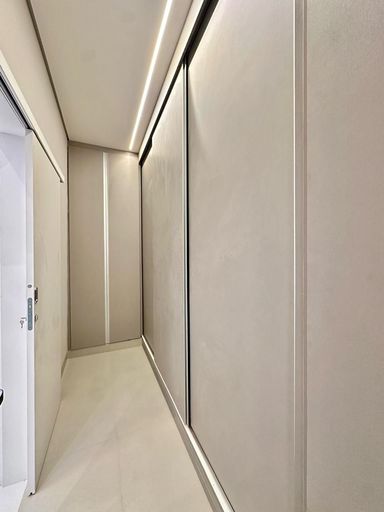 Hall de entrada do living com ótimas dimensões, armário e pé direito com aproximadamente 6m de altura