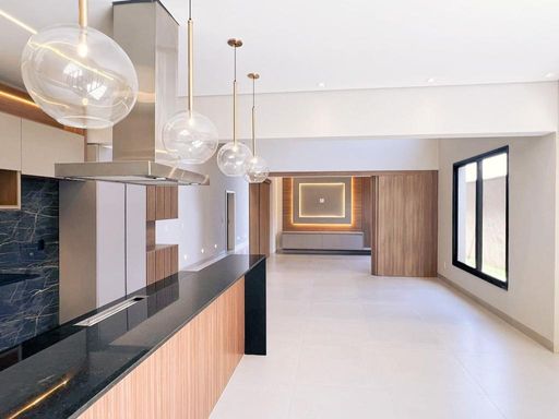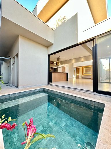 Casa térrea à venda totalmente funcional, com 249,00 m² de construção, distribuídos em 4 quartos, escritório, living com pé direito alta, área gourmet integrada com área da piscina.