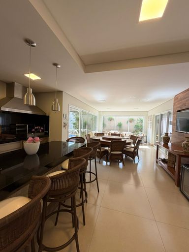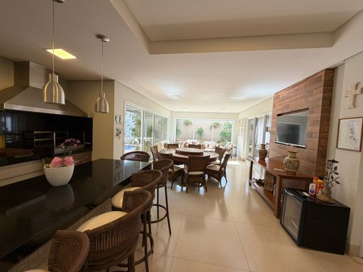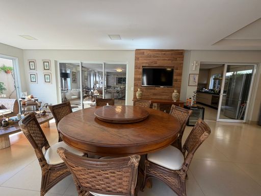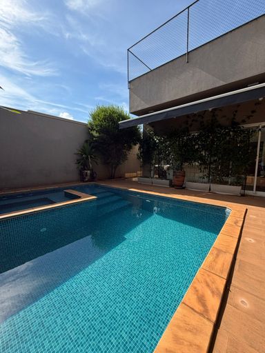 Casa à venda, com 360 m² de construção, distribuídos em 4 quartos, sendo 3 suítes, escritório, home, sala ampla com pé direito duplo e uma área gourmet aconchegante, bem equipada e integrada com espaçoso quintal e área da piscina.