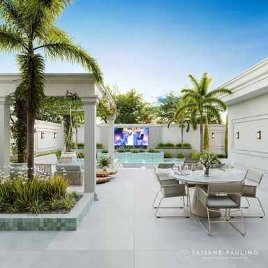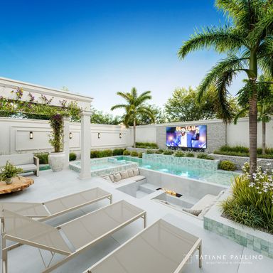 Lazer com fire pit, telão led, piscina (spa , raia e convencional aquecida com trocador de calor), pergolado e som ambiente.