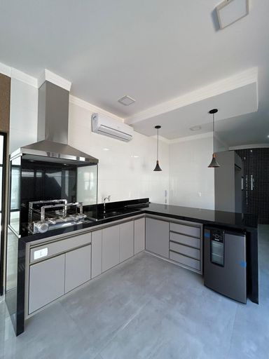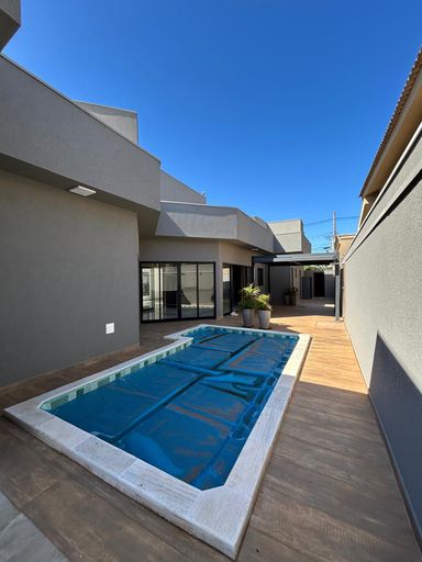 Casa térrea à venda, com 280 m², distribuídos em 4 quartos suítes, escritório, home, sala ampla e uma área gourmet aconchegante, bem equipada e integrada com espaçoso quintal da piscina.