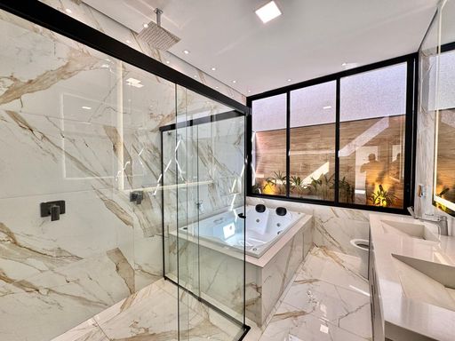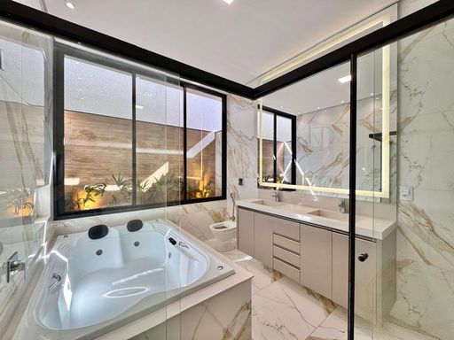 Viva com segurança, privacidade e qualidade de vida nessa casa à venda, com 285m² de construção, preparada para ar condicionado e carregador automático, energia fotovoltaica, automação, iluminação e som ambiente na piscina e espaço gourmet.