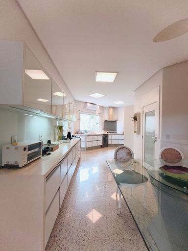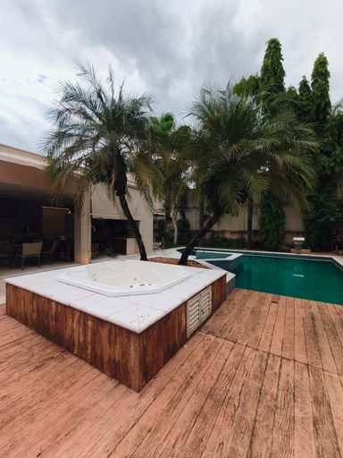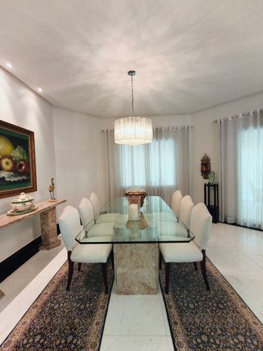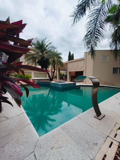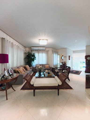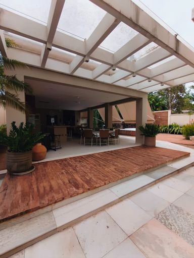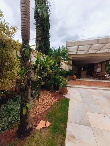 Casa térrea à venda, com 700 m² de construção, distribuídos em 5 quartos suítes, escritório, home, sala ampla com pé direito duplo e uma área gourmet aconchegante, bem equipada e integrada com espaçoso quintal, área verde e piscina.