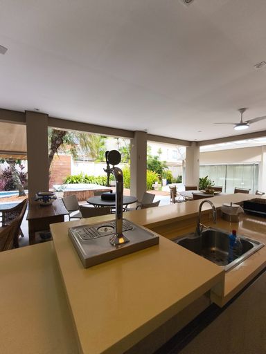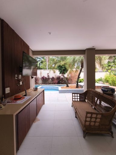 Cozinha com área gourmet integrada com área da piscina