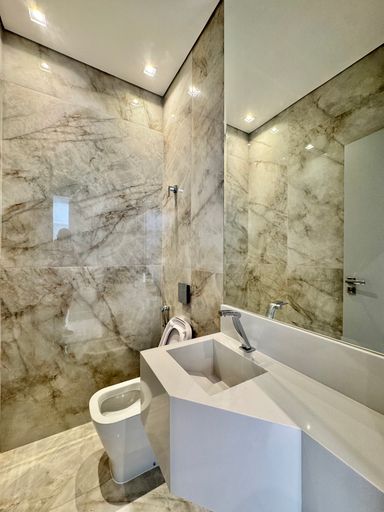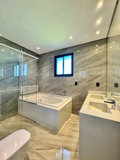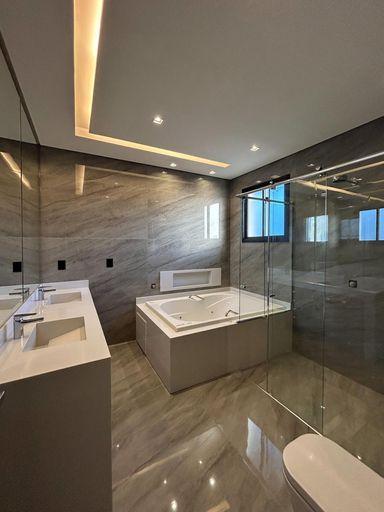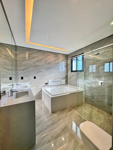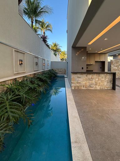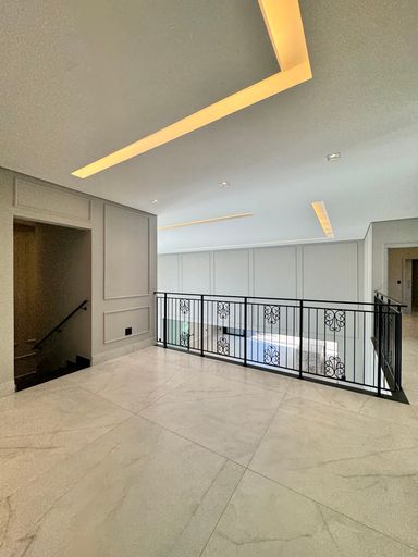 Uma belíssima mansão, de 2 andares, 800 m² de construção em um terreno de 930m². São 6 quartos suítes amplos, mezanino, living com pé direito duplo, elevador, sala de banho, 9 banheiros, área gourmet totalmente equipada, integrada com o quintal, piscina e spa molhado.