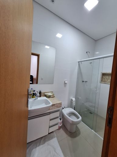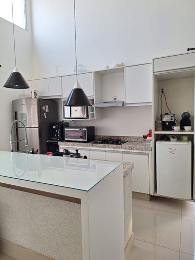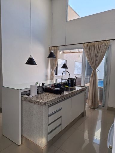 Casa térrea à venda, distribuídos em 3 quartos suítes, área gourmet completa com armários, churrasqueira e integrado com quintal e piscina.