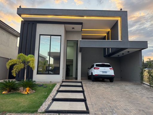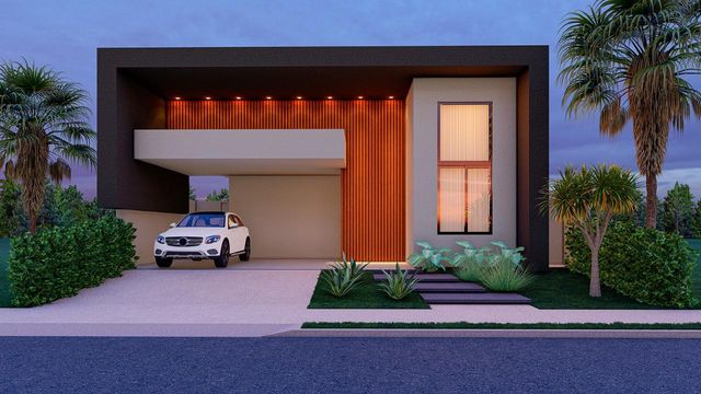 Casa térrea à venda, com 181m² de construção, distribuídos em 3 quartos suítes, rica em paisagismo, estrutura toda preparada para energia fotovoltaica (homologação), sistema de aquecimento solar e excelente localização. ✅ 3 suítes, sendo 1 suíte master com closet; ✅ Escritório; ✅ Lavabo; ✅ Sala 2 ambientes; ✅ Cozinha gourmet com churrasqueira; ✅ Lavabo externo; ✅ Piscina; ✅ Acabamento todo em porcelanato Villagres; ✅ Toda a casa com laje, rebaixo de gesso em todos os ambientes e iluminação embutida, moderna e de alta qualidade; ✅ Marcenaria em todas as suítes, banheiros, roupeiro, área de serviços e área gourmet; ✅ Garagem para 4 carros, sendo 2 cobertas e 2 descobertas. Um ótimo imóvel edificado em um condomínio projetado para oferecer a seus moradores a comodidade de viver em harmonia com a natureza, com uma ótima infraestrutura de lazer e momentos de recreação: Piscina, academia, quadra de tênis, beach tennis, poliesportiva, campo de futebol, playground, circuito de cooper, lago, minimercado e salão de festas. Para garantir a máxima privacidade e segurança aos seus moradores, o condomínio tem segurança 24 horas, portaria com controle de acesso e separada para prestadores de serviços. É dotado de um cinturão verde que faz com que nenhum lote entre em contato com os muros que contornam o empreendimento. Observações: Consulte-nos sobre a disponibilidade e as informações do imóvel anunciado. Valores sujeitos a alteração.