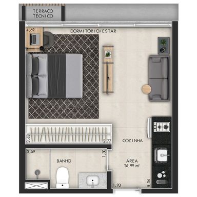 Compacto e moderno ele é ideal para quem busca um estilo de vida prático e exclusivo, ou para quem deseja investir em um imóvel com alto potencial de valorização e demanda de locação.