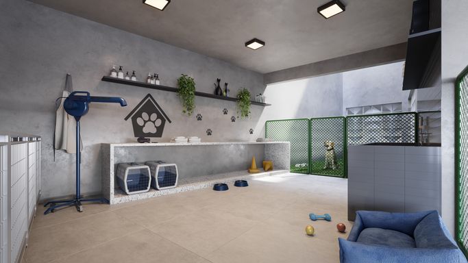 O empreendimento conta com diversas opções de lazer e comodidade. No 2º subsolo, há um Pet wash, a Oficina de bike, o Espaço delivery, o Espaço locker, o Espaço Multiuso e a Vagas de bike, distribuídas nos dois subsolos. No térreo, os moradores podem usufruir de uma quadra poliesportiva, Beach tennis, Churrasqueira, Pet place, Club House, Piscina adulto e Piscina infantil, além de um Espaço gourmet. Também há Portaria no 1º subsolo e Portaria principal com porte-cochère. A área de lazer conta ainda com Brinquedoteca, Playground, Salão de festas, Salão de jogos teen, Sala de jogos adulto, Academia, Nail space, Beauty space, Mini market, Coworking, Espaço convivência e Espaço para máquina de gelo.