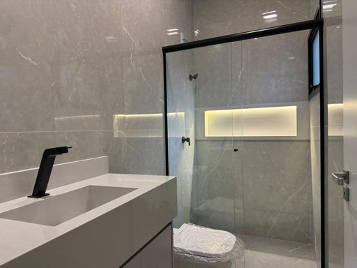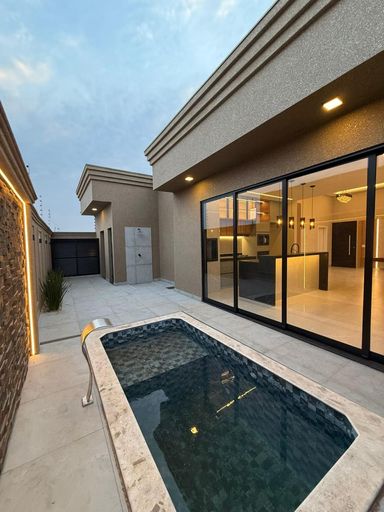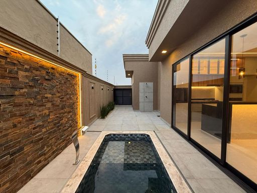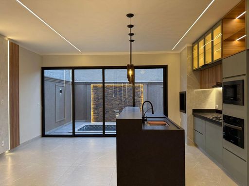 Casa térrea à venda, com 219 m² de construção, distribuídos em 3 quartos, sendo 1 suítes com closet, sala de estar ampla com pé direito duplo, sanca iluminada e uma área gourmet aconchegante, bem equipada e integrada com a piscina.