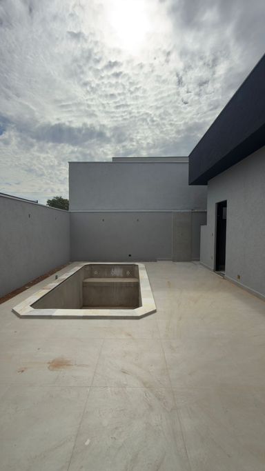 Casa térrea à venda totalmente funcional, com 145 m² de construção, distribuídos em 3 quartos suítes, escritório, living com pé direito alto, área gourmet integrada com área da piscina.