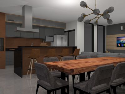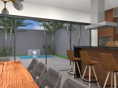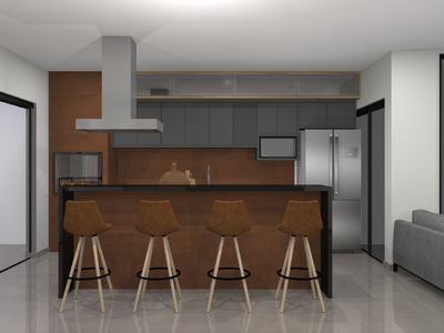 Casa térrea à venda, com 228 m² de construção, distribuídos em 3 quartos suítes, escritório, sala ampla, área gourmet com ilha, bem equipada e piscina.