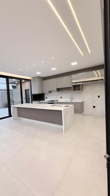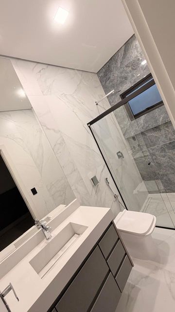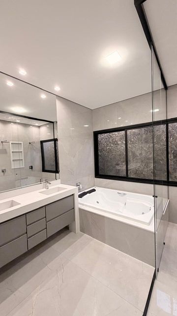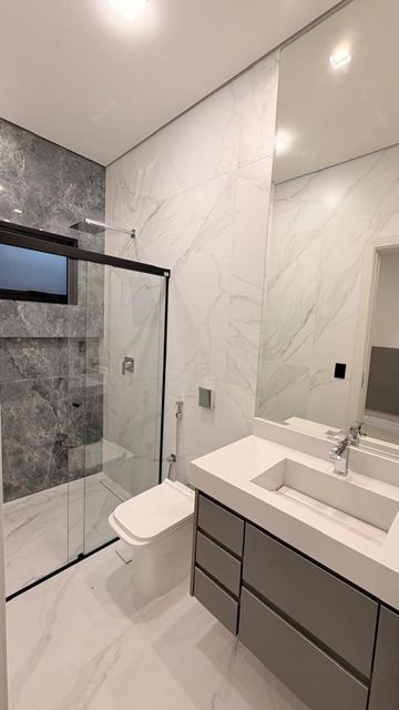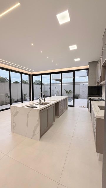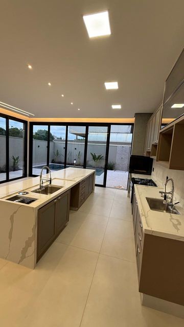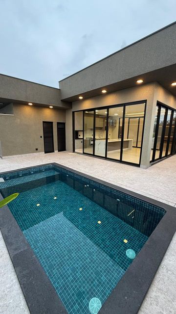 Casa térrea à venda, com 239,93² de construção, face sombra, distribuídos em 3 suítes todas com armários, mais um roupeiro no corredor, sendo 1 master com closet e hidro, sala ampla com pé direito alto, 1 escritório planejado, cozinha gourmet planejada com ilha e churrasqueira, lavanderia também planejada, 5 wcs no total, (os íntimos com box e gabinete) mais 1 lavabo e 1 de serviço, interruptores digitais, boa parte da casa automatizada, com Alexa, piscina aquecida. Pisos em porcelanato.