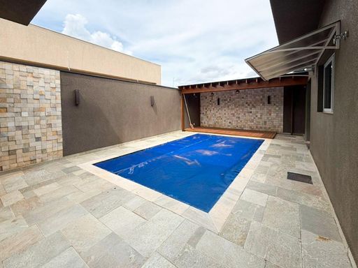 Casa térrea à venda, com 300 m², distribuídos em 3 quartos suítes, sala ampla e uma área gourmet aconchegante, bem equipada e integrada com espaçoso quintal, e área da piscina.
