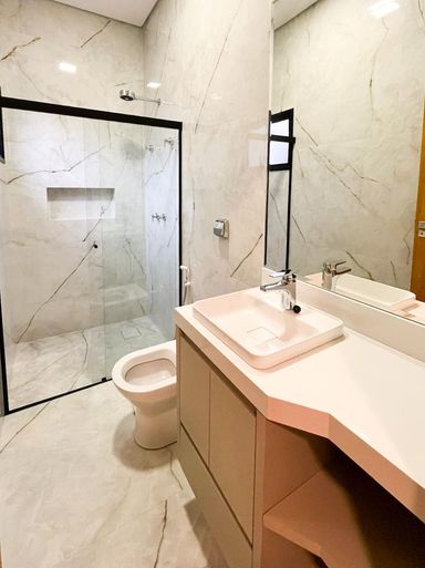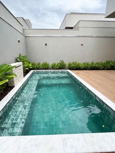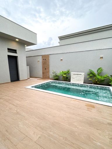 Casa térrea à venda, com 172 m², distribuídos em 3 quartos suítes, escritório, home, sala ampla com pé direito duplo e uma área gourmet aconchegante, bem equipada e integrada com espaçoso quintal e área da piscina.