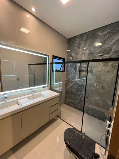 Banheiros com box e espelhos