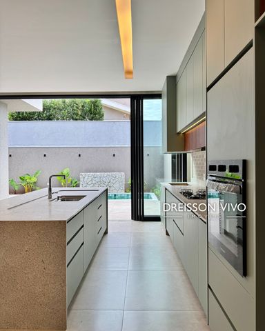 No condomínio Quinta do Lago I Blue Lagoon, esta casa térrea tem X m², distribuídos em X quartos suítes, escritório, home, sala ampla com pé direito duplo e uma área gourmet aconchegante, bem equipada e integrada com espaçoso quintal, área verde e piscina.