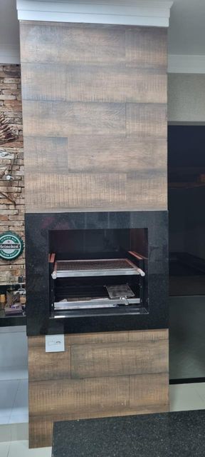 Área gourmet com pergolado churrasqueira