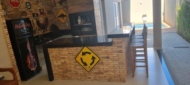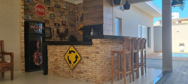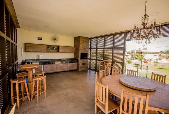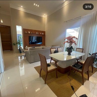 No condomínio Quinta do Lago I Blue Lagoon, casa térrea à venda, com 230 m², distribuídos em 3 quartos suítes, sala ampla com pé direito duplo e uma área gourmet aconchegante, bem equipada e integrada com espaçoso quintal, área verde e piscina aquecida.