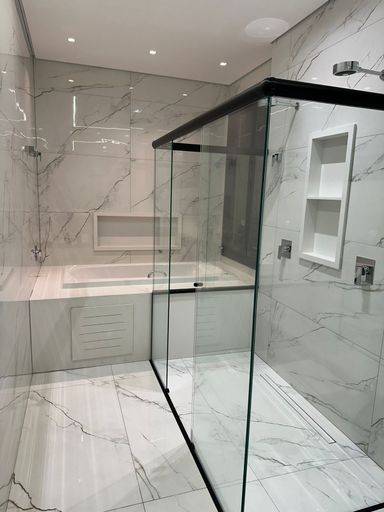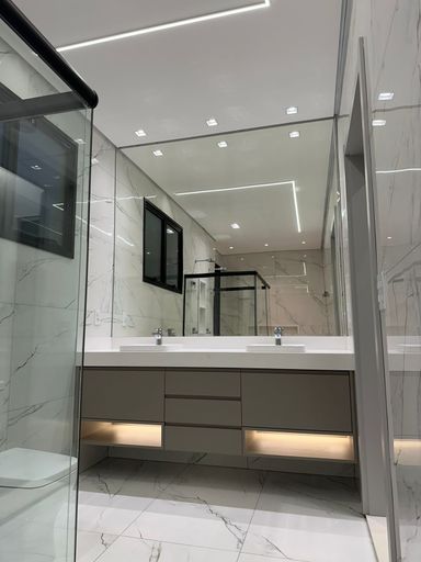 3 Suítes com persianas automatizadas, sendo 1 Master com closet, banheira com hidro aquecida