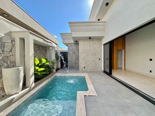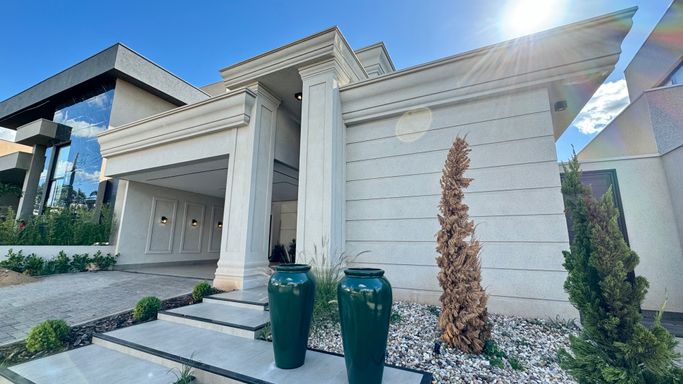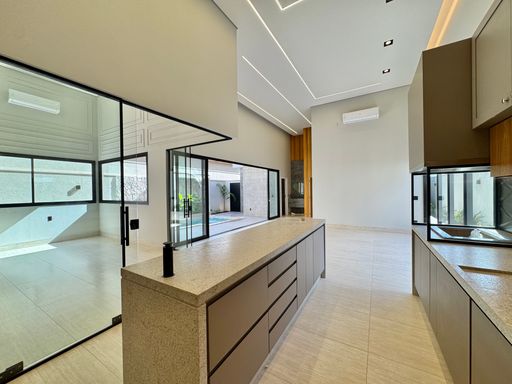 Casa térrea à venda no Terra Vista, com 227 m², distribuídos em 3 quartos suítes, escritório, home, sala ampla com pé direito duplo e uma área gourmet aconchegante, bem equipada e integrada com espaçoso quintal, área da piscina.
