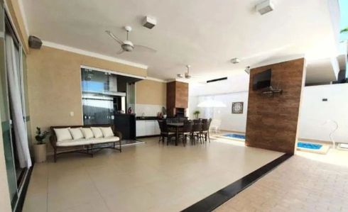 Casa térrea de esquina à venda, com 199 m², distribuídos em 3 quartos suítes, escritório, home, sala ampla com pé direito duplo e uma varanda gourmet aconchegante, bem equipada e integrada com espaçoso quintal e área da piscina.
