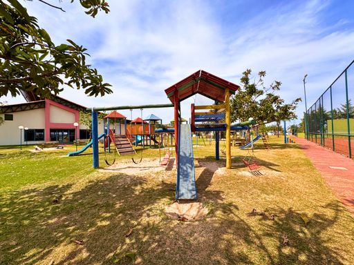 Além disso, o condomínio conta com uma infraestrutura completa, com segurança 24 horas, monitoramento por câmeras, portaria com controle de acesso, amplas áreas verdes e espaços de convivência.