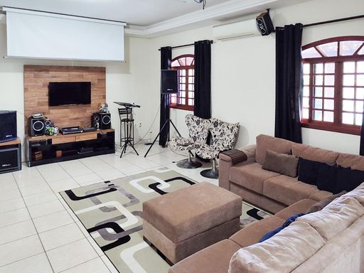 Casa no condomínio Monte Carlos, em Guapiaçu, medindo 500 m² de construção, com muito verde e segurança com 3 salas amplas, home theater, 3 dormitórios (1 suíte com 50 m² com closet e banheira) 2 cozinhas (uma com 40 m² e outra externa com churrasqueira, fogão e forno a lenha, cascata, lago de peixes, quarto de despejo com 25 m², bar externo, deck, lavanderia, vestiário, 2 banheiros externos, muitas árvores frutíferas, sistema de segurança, internet de fibra ótica, bar externo, deck,