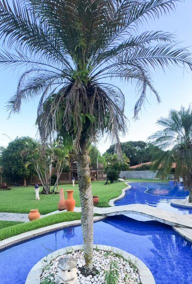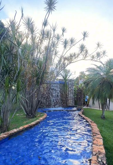 lago de peixes, árvores frutíferas, e uma área de lazer com 300m² com piscina e cascata.