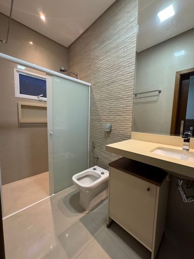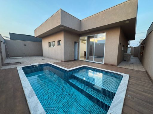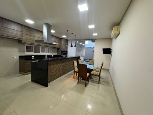 Casa para Locação, com 220 m² de construção, distribuídos em 3 quartos, sendo 2 suítes, escritório, home, sala ampla com pé direito duplo e uma área gourmet aconchegante, bem equipada e integrada com espaçoso quintal e piscina.