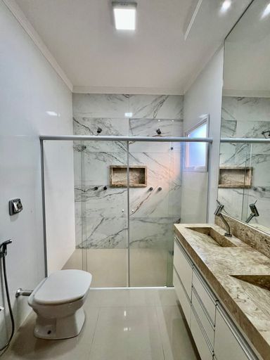 Casa térrea para locação, com 165 m² de construção, distribuídos em 3 quartos suítes, sala ampla com pé direito duplo e uma área gourmet aconchegante, bem equipada e integrada com espaçoso quintal e piscina.